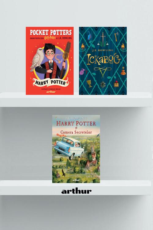 Pachetul Harry Potter conține volumul Camera secretelor, în ediție ilustrată, Ickabog și ghidul oficial Harry Potter